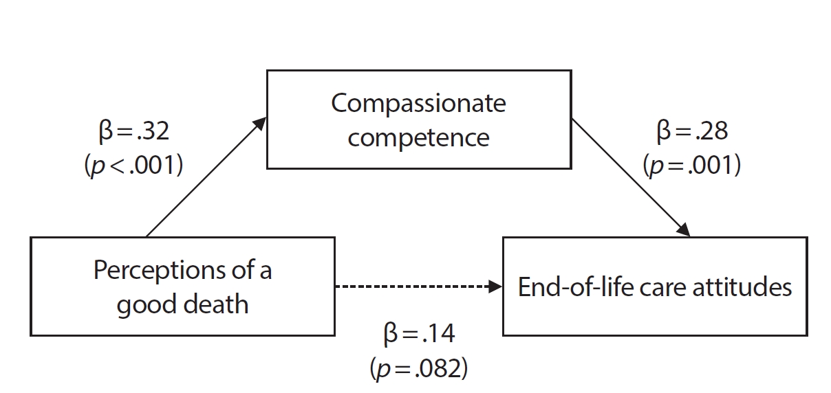 The Mediating Effect of Compassionate Competence in the Relationship between Perceptions of a Good Death and Attitudes towards End-of-Life Care among Ward Nurses in Younger Generations