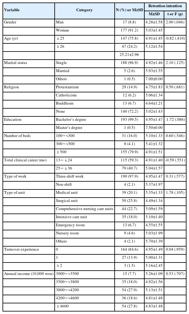13]. 재직의도란 간호사가 다른 직업을 찾으려는 것을 멈추고 현재의 간호직무를 지속하려는 의도를 말한다[