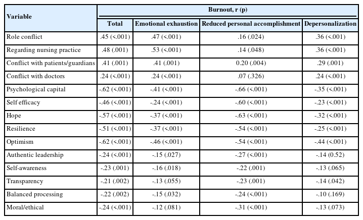 Factors Influencing Burnout of Nurses in Comprehensive Nursing Care Service Wards: Focusing on Positive Psychological Capital, Role Conflict, and Authentic Leadership