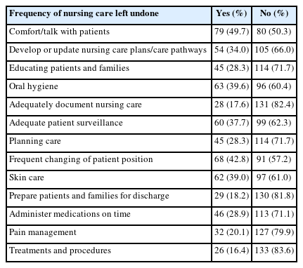 3]이 개발한 Nursing Care Left Undone Scale을 Park과 Hwang [